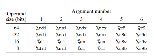 - 寄存器是按照特殊顺序来使用的,而使用的名字是根据参数的大小来确定的。