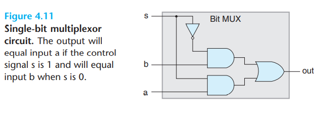 多路复用器(multiplexor, MUX),多路复用器根据输入控制信号的值,从一组不同的数据信号中选出一个。